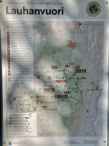 Read moreLauhanvuori on omanlaisensa ja sinänsä mielenkiintoinen paikka, historiansa - entinen saari - ja Kivijatan eli pirunpellon vuoksi. Täällä Lauhanvuoren rinteillä lauhan ilman vuoksi on aloitettu myös perunanviljelyä 1800-luvun alussa. Alempana kun oli ainainen hallanvaara. Entisissä rantamaisemissa kävellessä ihmettelimme että miksi ihmiset eivät kerää tatteja, joita täällä oli melko runsaasti - mekään emme keränneet sillä kotiinmeno oli vielä muutaman päivän päässä, joten jätimme, ehkä monet tateista olivat jo matojen valtaamia. Näkötorni oli myös mukava kokemus, n 20 m korkeudella oli huikaisevat näkymät ympäröiviin maisemiin, lähellä vain metsää, mutta taivaanrannalla siintelivät lukuisat tuulivoimalat - lähes joka puolella.