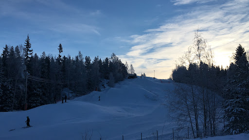 lapsiystävällinen paikka, hyvä pulkkamäki ja pulkat! Ihan parasta!, kaksi liukumäkeä, pomppulauta ja grillikodat aivan vieressä ja näissä nuotiot jo valmiina käytettäväksi! Mäet hyvät ja monipuoliset, paljon hyppyreitä. Lapsille pikkumäki jossa pujottelua ja parit pikku hyppyrit sekä tunneli,aivan ihanasti tämäkin ajateltu loppuun saakka. Tilat viihtyisät, vuokraamo avara, uusi ja paljon tarvikkeita vuokrattavaksi. Huivinkin sai lainaksi kun oma jäi kotio. Lainattavat välineet uudehkoja ellei jopa uusia. Suosittelen lämpimästi poikkeamaan. Hinnat ovat korkeat mutta kun ottaa huomioon sijainnin ja asukasluvun en yhtään ihmettele ja kyllä tuosta...
