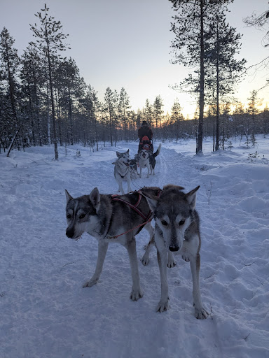 If you are looking for a smaller husky kennel and want to avoid mass tourism, this is the right place. We´ve booked a Nature Husky ride (reservations are made per e-mail, but the process is smooth) and there we were alone on this tour (4 adults), so we could enjoy the privacy. The dogs looked that they are taken care of and they were full of energy. We enjoyed the ride and then we were offered a hot drink and cakes in the hut by the fire. Here I have some recommendation: it would be nice if we get some information and talk about the kennel, how do they take care of the dogs etc. We didn´t learn anything and that´s...