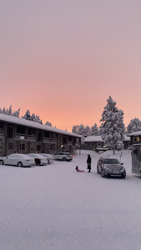 Read moreReise war im März 2022||Das Levi Spa Hotel ist eines der wenigen Hotels mit einem eigenen Spa / Wasserwelt. Tolle Lage mitten im Zentrum. Ausflüge von Levi aus mit Lapland Safari möglich. Skipiste direkt neben dem Hotel.||Lage & Umgebung|Das Hotel liegt ca. 3 min zu Fuß vom Levi Zentrum entfernt. Mit dem Taxi ist man in 10-15 min vom Flughafen am Hotel (Preis allerdings teuer, 40 € einfache Fahrt). Es gibt auch die Möglichkeit mit dem Levi Bus zu fahren, dieser kostet ca. 9 € einfache Fahrt und fährt ca. 5 Hotels an. Das Levi Hotel besteht aus einem Haupthaus sowie mehreren kleinen Häusern. Über das Haupthaus mit Rezeption kommt man in das Buffetrestaurant „Ahku“ sowie zur Pizzeria „Classic Pizza Restaurant“. Durch die vielen kleineren Gebäude hat das Hotel einen tollen Dorfcharm. Direkt hinter dem Hotel befindet sich ein Skihang mit Schlepp und Sessellift.|Wir waren im Gebäude „Ounas“, welches eine direkte Verbindung in die Wasserwelt hat. Auch direkt hinter unserem Haus (Richtung Schneehang) war eine Treppe, welche über ca. 800 Stufen direkt am Levi Panorama Hotel (erste Station des Lifts) heraus kam. Hier hat man eine tolle Aussicht über das ganze Gebiet und Levi.||Wenn man den Hauptausgang hinaus läuft, Richtung Levi Zentrum, linker Hand gibt es eine Unterführung (Richtung K5 Hotel, hinter dem Gebäude gibt es ein paar Rentiere), welche zum Lake Iimmeljärvi führt. Dieser bietet eine herrliche Winterlandschaft, auf dem Schneemobile, Langläufer und Spaziergänger zu finden sind. Er ist ebenfalls Treffpunkt für das nächtliche Beobachten von Polarlichtern. Hier hat man einen tollen Blick.||Die Ausflüge haben wir vorab über den Veranstalter Lapland Safaris gebucht. Der Treffpunkt für alle Touren war über die Leviratti Hauptstraße zu Fuß in ca. 15 min zu erreichen.||Zimmer|Wir hatten aufgrund des runden Geburtstages meines Mannes (Geschenk war die Lapland Reise) ein Upgrade auf eine Juniorsuite bekommen. Hierfür nochmal ein herzliches Dankeschön an das Hotel.|Das Zimmer war sehr groß und gemütlich eingerichtet. Es gab ein separates WC mit einem kleinen Waschbecken sowie ein Badezimmer mit begehbarer Dusche, Waschbecken, Haartrockner und einer eigenen elektrischen Sauna.|Im Flur befindet sich ebenfalls ein beheizbarer Schrank, um nasse Kleidung zu trocknen, welchen wir aber nicht genutzt haben.|Es gibt ein Schlafzimmer mit einem Doppelbett und einem kleinen Schreibtisch sowie einen Schwebetürenschrank mit Safe.|Das Schlafzimmer ist mit einer Schiebetür vom Wohnbereich getrennt. Dort befindet sich ein ausziehbares Sofa (Schlafmöglichkeit für weitere 2 Personen), ein Sessel mit Beistelltisch, ein kleiner Schreibtisch, eine Schrankwand mit kleinem Waschbecken, Gläsern, Kaffee und Teemaschine sowie ein Kühlschrank. In beiden Zimmern befindet sich ein großer Flaschbildschirmfernseher (allerdings kein deutsches Programm, Amazon Fire TV Stick zu empfehlen).|Das Zimmer hat auch einen großen langen Balkon mit 2 Stühlen und Tisch, wir hatten Blick zum Innenhof und Langlaufhang.|Die Zimmer waren ruhig. Einziger kleiner Nachteil, die Vorhänge machen das Zimmer nicht richtig dunkel (falls man hier Probleme hat). Empfehlenswert ist auch das Zimmer zum Parkplatz hin, ansonsten hört man Abends Aprés Ski Musik und Karaoke Lieder.||Service|Die Mitarbeiter an der Rezeption waren alle sehr freundlich. Es wird hauptsächlich Englisch gesprochen. Im Buffetrestaurant gab es keine Mitarbeiter, nur in der Pizzeria.||Gastronomie|Das Levi Spa Hotel hat 4 Restaurants: Buffetrestaurant „Ahku“, Pizzeria „“Classic Pizza Restaurant“, à la carte Restaurant „Kekäle“ und einen Burger King (Original).|Wir hatten Halbpension gebucht, was ich nicht empfehlen würde. Das Abendessen im Buffetrestaurant entsprach der Qualität einer Kantine. Es gab ein kleines Vorspeisenbuffet und als Hauptgang ein Fisch, zwei Fleischgerichte, Pommes und zwei Beilagen. Auch die Qualität war nicht besonders, auch nicht besonders warm. Als Tischgetränk musste man sich selbst an einem Kanister etwas holen (Wasser oder Beerensaft). Kellner gab es keine, nur welche die manchmal das Geschirr abräumten. Auch Besteck müsste man sich selbst am Buffet mitnehmen.|Wir haben nur zweimal dort gegessen und waren ansonsten zweimal in der Pizzeria (diese hatten nur Pizzen und ein bis drei Salate, welche aber gut geschmeckt haben und groß waren, Preis zwischen 10-15 € pro Pizza). Getränkepreis waren auch in Ordnung.|Das Frühstück war ok, hier konnte jeder etwas finden. 3-4 Wurstsorten, 3 Käsesorten, Joghurt, etwas Müsli, Brötchen und sehr gutes Brot, Waffelstation zum selbst machen, Cappuccino Automat. Aber auch eher einfacher Standard, die Gäste kamen bereits in Skikleidung und sehr leger. Man musste sich in keinem Restaurant entsprechend kleiden, konnte immer in Winterbekleidung direkt Essen gehen.|Das à la carte Restaurant haben wir nicht probiert.||Was man allerdings im Buffetrestaurant loben muss, ist die Bezeichnung der Lebensmittel mit lactosefrei oder glutenfrei. Es gab auch immer bei allem die Möglichkeit kostenfrei glutenfreie Produkte zu nehmen.||Ein Tag haben wir in Levi Stadt noch im „King Crab House“ gegessen, wo wir den Krabbenburger empfehlen können. Ein etwas schickeres Restaurant.||Sport & Unterhaltung|Das Hotel hat einen eigenen Wasserpark (keine Therme), welchen wir nicht genutzt haben. Es gab hierfür Bademäntel, Schuhe und Handtücher auf dem Zimmer sowie ein Armband am Check-in für die kostenfreie Nutzung. Sonntags hat der Wasserpark geschlossen. Es gibt auch einen kleinen Außenbereich mit Whirlpool, wo man direkt den Skihang beobachten kann.||Ebenfalls gibt es einen großen Fitnessbereich in einer Art Turnhalle, dieser sah modern aus. Wir haben ihn allerdings auch nicht genutzt/besucht.||An Unterhaltung gab es abends in der „Kekäle“ Bar Aprés Ski Party oder im Levi Zentrum, was alles zu Fuß zu erreichen ist.||Als Abendunterhaltung