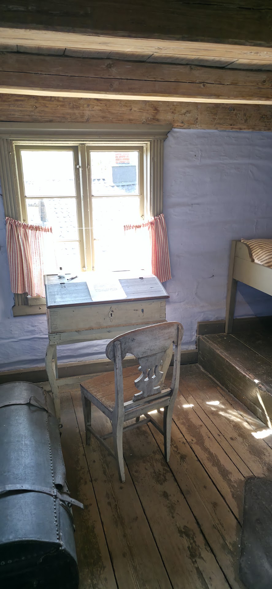 One thing I found very peculiar at the Turku houses, including the rich occupants, is the size of the beds. They were absolutely tiny! At the time of my visit I assumed the beds were extendable, but they were not! After doing some research I discovered that one would need to curl into the fetal position or sleep in a semi-upright position to fit on the bed. This was typical of the era, for current health, safety and convenience reasons. The houses were also small, so having a small bed that could be used as a “daybed” that could be used as a sofa during the day, and a place to sleep during the night was advantageous. People where also smaller and shorter a few centuries ago.