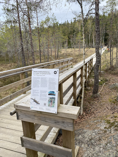 Sauna tiellä kävijöille - itse toimin sauna maksun edestä - jos olet ensimmäinen ja saunan lämmittäjä, sillä hyvät löylyt saat heittää jo kolmen vartin päästä ja kahden pesällisen jälkeen. Vahvat löylyt syntyvät tunnin jälkeen. Kiva ja mielenrauhaa antava kokemus. Oltiinkin ensimmäiset. Täytettiin vesisäiliö, haettiin puut, sanomalehti oli mukaan ja tikut löytyisivät kiukaan vierestä. Oli vähän huono veto ja puut hieman kosteat, mutta kokeiltiin yhtä ja toista - onnistuimme. Virkistävä oli käydä järvessä uimassa ja palata lauteille ja toista sitä sama monta kertaa. Järven vesi on ruskea ja hieman lipeä ja se jäta jälkeen - onneksi saunaan tule juoksevaa vettä. Vanhan ajan/ mökkiin elämän tavalla - kylmä vettä ja lämmitetty vettä yhdistetään vadissa ja saa ihan hyvin peseytyä. Talon ulkopuolella on hana, mistä saa juomavettä. Rannalla pöydät ja penkit, saunan ja pysäköintialue välillä grillikatos. Parkkipaikkoja riittää. Meidän siellä ollessaan tulit jo seuraavat saunomaan - hyvä niin, että sauna ei...