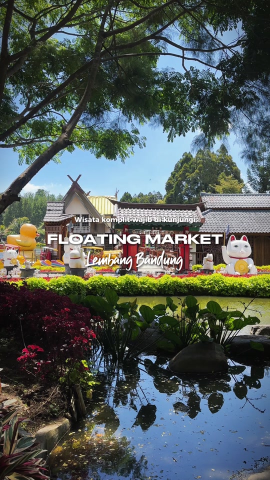 The Floating Market Lembang Overview Floating Market Lembang is a popular recreational park built around a man-made lake. While it is inspired by traditional floating markets, it functions more as a family-friendly theme park and culinary center where vendors sell food and snacks from colorful boats lined up on the water.