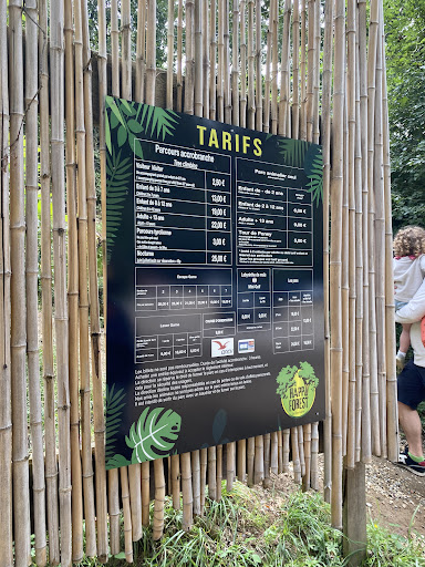 Nice place in the woods, but only for french tourists. It was not a surprise that most of the people in that region of France do not speak English. But I expected that that place would offer rudimentary English skills. It started with the most important, the safety instructions. You are led into a room where a 5-minute movie completely in French is shown. So far, so good. When we were brought out of the room I kindly advised the guy that seeing that movie in French or having seen a cartoon, would have had the same effect. My comment was gently acknowledged. I was led to the parcours and left alone with my safety concerns. After that frustrating moment, I did my best and nobody got hurt. My daughter after a while started to get bored and asked to ride a pony. I went back to the reception and asked to get to the animal farm and to get a pony tour. The lady at the reception just looked at me like a deer shortly before a car accident. She did not get a word I said. Somehow she was able to type in something into her system and claimed about 20€ for that. I felt being robbed, but what could I say? On one hand a girl crying to see animals and riding a pony. On the other hand a totally overwhelmed lady, surprised that at this place of the earth people show up that do not speak French. I paid, but it left a bad taste in the mouth.