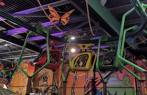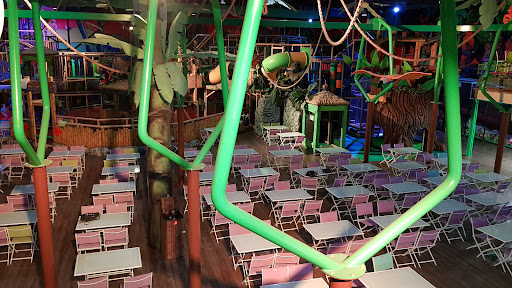 Read moreLieu idéal pour que les enfants cascadeurs puissent tester de nouveaux jeux en toute sécurité si l on respecte les règles. Plusieurs parcours évolutifs en fonction de l âge des enfants. Pour les plus grands, toboggans géants, plusieurs trajets possibles d escalade et de jeux en fonction des capacités et des craintes des enfants. Le tout entouré de grands filets de sécurité qui permettent aux accompagnateurs d avoir un visuel sur les enfants. Au milieu, des véhicules électriques qui circulent avec une pièce de 1 euro sur un circuit à sens unique. Tout le décor dans la pénombre d une jungle que l on peut admirer du ciel avec un hélicoptère à pédales, avec un adulte ou un enfant responsable et assez grand pour pédaler. Au rez-de-chaussée, un espace tables et chaises pour les accompagnateurs ou pour les temps repas à consommer sur place au snack. Possibilité de lire pendant que les enfants jouent. A l étage, plusieurs espaces ouverts sur le parc, prêts à accueillir des groupes ou collectivités. Possibilités de fêter les anniversaires. Prévoir plutôt des chaussettes antidérapantes car le sol est froid en hiver et les enfants peuvent glisser sur le sol en courant entre chaque espace. Pour les accompagnateurs, prévoir des vêtements chauds car il y a des courants d air et l espace est difficile à chauffer, par contre pour les enfants, prévoir plutôt un t-shirt manches longues et pantalons longs pour les frottements et frictions sur les jeux. Pas de vêtements chauds car les enfants se dépensent et transpirent énormément. C est un peu le parcours du combattant version ludique. Attention aux plus grands enfants qui oublient parfois qu'il y a des plus petits à ne pas bousculer. Un super rapport qualité/ prix pour la demi-journée ou la journée pour les plus résistants. Idéal quand il ya le mauvais temps à...