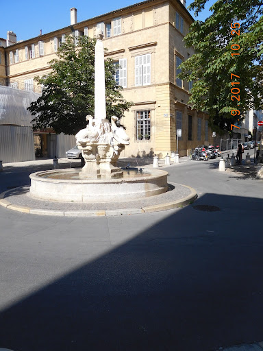 Protégée au titre des Monuments Historiques en 1905, elle se compose d’un bassin circulaire réalisé en pierre froide de la Sainte Baume, dont le centre est occupé par un obélisque décalé et supporté par quatre dauphins. Leurs nageoires caudales sont quant à elles sculptées dans de la pierre de Calissanne.