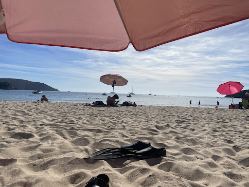 Decent beach, but not Corsica’s best. The sand is a bit coarse, and during my visit the water had some seaweed plus a few bits of plastic. Still, the setting is pretty and there are several good restaurants within a short walk. Nice enough for a swim and lunch stop; if you want powdery sand and crystal-clear water, try another spot.