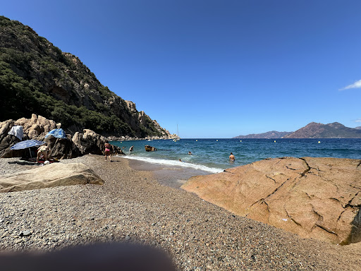 Read moreEine wunderschöne Bucht, die wirklich einen Besuch wert ist. Ein Urlaubs-Highlight. Wenn man sein Wohnmobil beherrscht und das WoMo nicht zo groß ist (ich denke, bis 7 Meter) kann man die Straße bis zum Strandparkplatz gut befahren. Ja, es ist steil und kurvig und eng, aber es geht. Manche Rezensionen hier schreiben, es sei selbst für korsische Verhältnisse eine schwierige Straße. Das sehe ich nicht so. Wenn man die Calanche fährt oder auch mal in den Bergen in den Dolomiten unterwegs ist, ist diese Straße kein Problem. Gibt auch sehr viele Ausweichbuchten. Das Restaurant ist eher am Ende des Parkplatzes, unten am Strand gibt es keine Bar. Als wir um 10 Uhr ankamen, sah das Restaurant völlig verlassen aus. Als wir um ca 13.30 Uhr wieder gegangen sind, hatte es offen und die Preise sahen auch ganz OK aus. Ich hätte allerdings keine Lust gehabt, vom Strand aus zum Mittagessen wieder ganz hoch zu laufen. Der Weg vom Parkplatz zum Strand ist auch völlig unproblematisch, man braucht kein festes Schuhwerk. Normale Sandalen reichen völlig, Flip-Flops sollten es vielleicht nicht unbedingt sein. Früh kommen, ist auch eine gute Idee, ab 12 Uhr ist es...