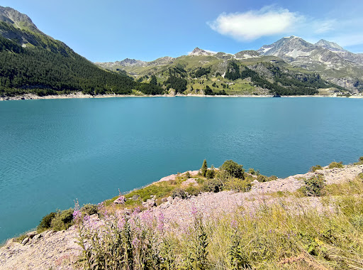 Read moreAltro lago alpino formato dallo sbarramento di una diga...questo è posto in alta Val d'Isére, giusto prima dell'imbocco del piccolo ma scenografico Canyon che porta al paesino ( Meraviglioso!!! ) che dà il nome a tutta la Valle....la cosa più bella del lago è il paesaggio che gli fa' da contorno, con il Maestoso massiccio dell'Iseran che si intravede oltre il Canyon ed il ghiacciaio sopra il paesino di Tignes, al quale si può arrivare passando sopra lo sbarramento della diga e prendendo la bella strada che sale dall'altro lato...zona Bellissima, molto turistica, sia d'estate ( motociclisti e ciclisti onnipresenti..) che soprattutto d'inverno, quando sia Tignes che Val d'Isére costituiscono tappe storiche della Coppa del Mondo di sci...e poi dopo, si sale sul MITICO Col de l'Iseran!!!!!! ZONA DA...