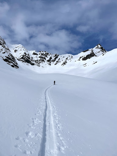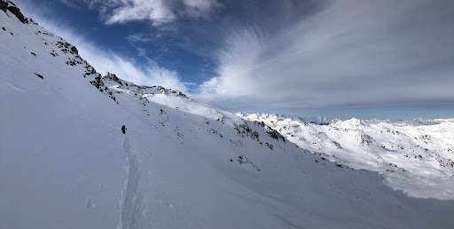 I did a one day with Yves, where we did a ski tour up Col Pierre Lory, Glacier de Chavière, Col de Gèbroulaz, Glacier de Gèbroulaz, Col de Borgne and Glacier de Borgne. The day was a perfect mix of touring and had some fun climbs. Yves took me on the best descents and managed to find very good powder all the way to the valley floor! He was very good at managing our route and offered good advice on ways I could improve my skiing.