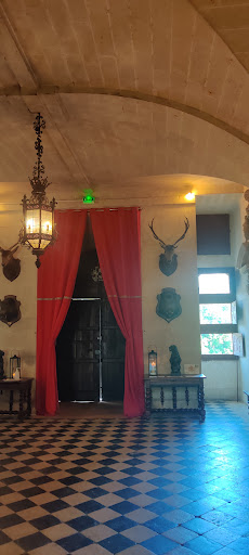 It was a very powerful overwhelming chateau inside with wood beamed ceilings throughout the chateau. The beamed ceilings have detailed mini-scenes on them with other painted and gold accents on them. The husband's bedroom was one that shouldn't be missed. It was quite impressive and more than most of the other chateaus I have visited. The wife's bedroom was very nicely done. The theme throughout was with animal antlers and animal heads on the walls. The kitchen was great to see, too! The grounds looking from the windows was pretty to see and photograph. There were very wonderful pieces of furniture with inlays and all. The tapestries were worth seeing. They even have a wine cellar where you can sample their wines for free and purchase bottles of you would like to. Many people were doing just that! Plus they have a room for staged performances to take place with theater seating and all! I definitely would recommend visiting this chateau. It has a lot to offer visitors...