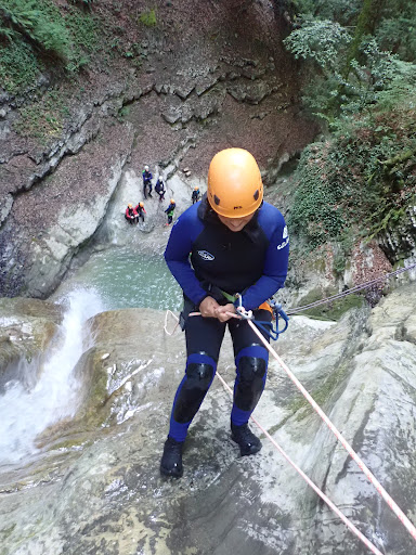 It is a mystery to me why no one has posted directions to this wonderful swimming hole in the canyon. Take chemin du nant d'Oy street to routes des vignes street, turn right and shortly you will see a mountain trail to the left. This trail is steep and rocky but fairly short. Keep hiking up till you reach a Y in trail. Go left. Another 5 mins gets you down into the canyon. Swimming holes (very cold) down river in sight. Note that taking a right will go to the Waterfall (Cascade) d'Agnon, much more grueling. Take watershoes if you are wearing hiking boots. You can hike down to the Waterfall from above, which I recommend. At the canyon, watch the well-equipped teams take paid guests canyoning in wet suits and rubber seat covers for sliding on. Looks fun. (Photo shows Y...
