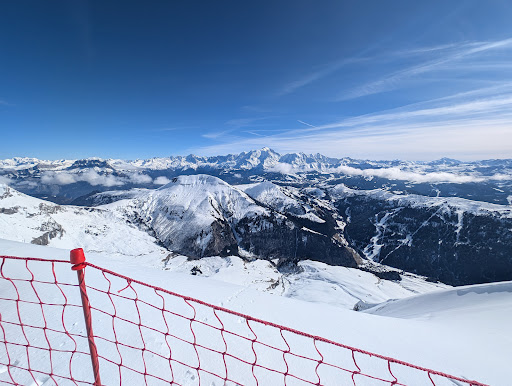 The height of the domain is impressive, leaving you the option to run down 1200m in height at once from the top to the bottom. The view from the top toward the Mont Blanc is worth the Instagram stop.