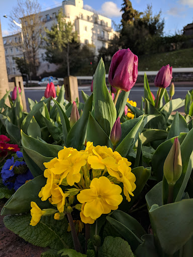 Beautiful and peaceful garden with a great view of the lake and the hill. There are lots of beautiful flowers and a special cherry tree which is blossoming right now. There's a small placeground...