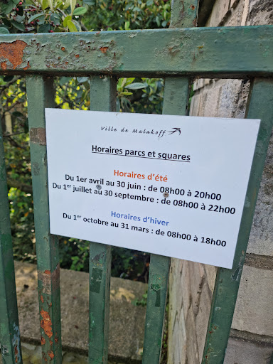 Read moreHoraire du 1er avril au 30 juin 8h 20h quelle surprise de passer devant à 9h30 un samedi matin est de trouver une porte ouverte sur les deux, très mauvaise gestion des horaires depuis que ce n'est plus la ville qui s'occupe de l'ouverture/fermeture du parc. Il m'est arriver de passer en plein mois de novembre un dimanche a 20h les portes etait ouvertes, je ne remets pas en cause le parc mais la societe...