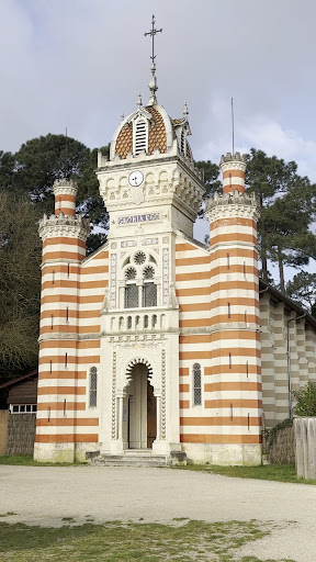 Read moreLa Chapelle de la Villa Algérienne, situata nel pittoresco villaggio ostricolo de L’Herbe sulla presqu’île de Lège-Cap-Ferret, è un autentico gioiello architettonico che merita una visita. Costruita nel 1885 dall’architetto Jean-Eugène Ormières su commissione di Léon Lesca, un imprenditore tornato dall’Algeria, la cappella presenta uno stile neo-moresco unico, con archi polilobati, decorazioni in ceramica dai motivi geometrici e floreali, e una facciata caratterizzata da una combinazione di colori ocra e bianco.