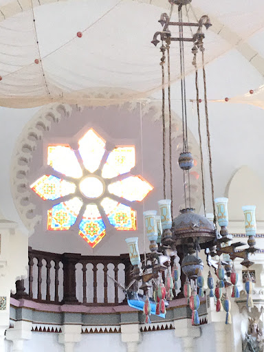 The architect J.E. Ormières designed this neo-Moorish style building for Catholic worship in 1885. On the bell tower, the parallels between the cross and the crescent moon, and the Latin and Arabic inscriptions reflect the cultural influences of the patron.
