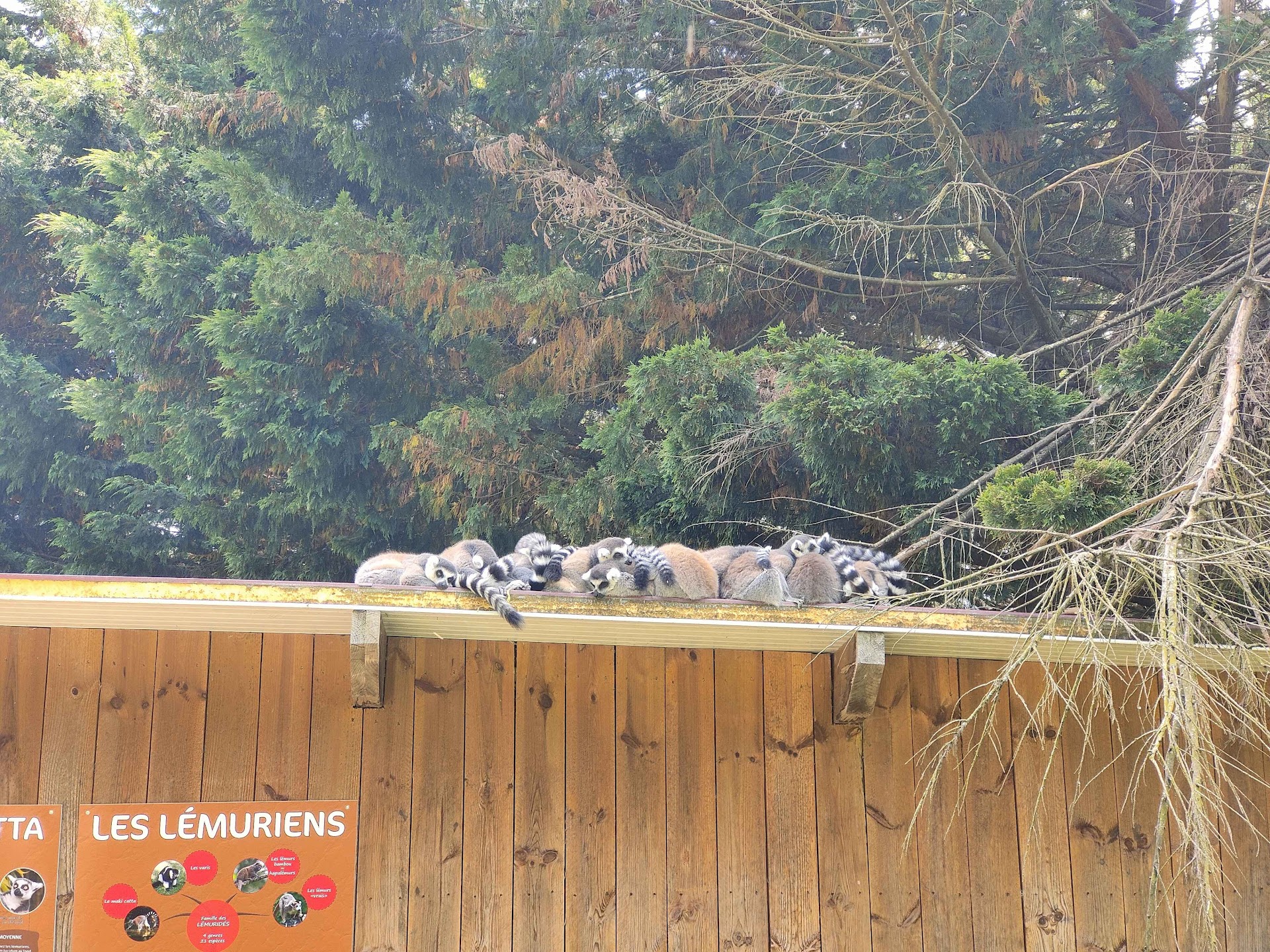 Il y a aussi quelques point négatifs -Pour ce qui est des Hippopotames nains, les vitres de leur lieu de vie étaient très sales et impossible de les voir correctement à travers leur lieu de repos. Nous avons pu en distinguer un, tout à droite, mais c'était compliqué de le voir. L'équipe etait cependant au nettoyage sur les enclos. -Mangouste naine et certains petits singes, les vitres étaient aussi sales. Cela permettait de les voir mais pas de pouvoir prendre des photographies avec le reflet du soleil + vitres pas propres. Lorsqu'il y a des passages de sas avec portaille, comme pour aller voir les lémuriens ou les grands volatiles, les portails ne referment pas avec ralenti et ils claquent si les gens ne prennent pas le temps de les refermer entièrement à la main. Ce qui fait beaucoup de bruit pour les animaux et quelques sursauts pour les visiteurs. Je me suis légèrement coupé en retenant le portail d'entré pour aller voir les lémuriens. Les sceaux dans l'enclos des grands volatiles était quasi vides. Pour le lynx et le tigre de sumatra, nous avons vu qu'ils tournaient en rond sur 4 metres de long : attente du repas ? l'ennui ou le stress. Leurs enclos nous semblés petits pour de si grandes espèces. Mais ce n'est que notre ressenti. La boutique en fin de visite était fermée ce lundi. C'est dommage car la visite matinale à l'ouverture est faite principalement par des familles avec enfants. Nous aurions voulu faire des achats souvenirs pour notre enfant mais la visite s'est terminée pour nous à 12H00, là oú la boutique est ouverte à partir de 12H30 le lundi.
