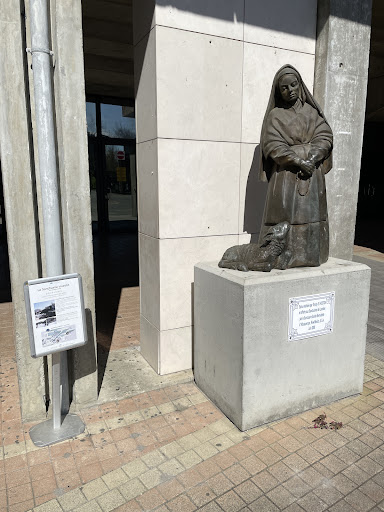 You'll find images of St. Bernadette with and outside the church. There is a small sculpture of Bernadette just outside the entrance as well as a larger and more attractive statue in front of the church, facing the river and main...