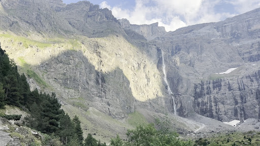 Read more3e randonnée après les 2 autres cirques, nous avons opté pour la randonnée jusqu'à la cascade ayant déjà un peu d'entraînement. Ayant lu pas mal de commentaires, je dois dire que je suis tout à fait d'accord sur le côté hyper touristique du lieu. Même parti à 10h, en semaine, il y a beaucoup de monde. Les nombreuses crottes sont parfois dérangeantes au niveau olfactif. Le chemin est effectivement une autoroute et pert un peu le charme de la randonnée de montagne. Le chemin est plutot ombragé le matin ce qui est agréable en cas de journée chaude. Avec nos 2 enfants de 6,5 et 9,5 ans, nous avons atteint l'hôtellerie au bout de 1h15. La première partie se fait assez bien...On va dire que le dernier kilomètre est plus hard. La 2e partie menant à la cascade monte tranquillement au départ (nous avons pris le chemin de gauche) puis les derniers 100aines de mètres sont très rudes même pour les adultes. C'est très pentu, glissant car que beaucoup des cailloux /graviers... Nous ne sommes pas aller toucher le bout mais nous sommes arrêtés juste avant car les enfants n'en pouvaient plus. nous avons mis 45mn sur cette 2e partie (au lieu des 30). La montée nous fait découvrir un cirque avec de nombreuses cascades, peu de végétations. .. Il faut redescendre un peu pour se trouver un place confortable pour pique niquer. Le debut de la descente est du coup tres glissante, un peu moins lorsque l'on s'ecarte sur la droite. Je vous conseille de passer le torrent pour voir les Névés sur la droite de la cascade (on ne les voit pas du chemin principal). Plus bas, le végétation reprend vie et le torrent offre des accès sympas pour mouiller les pieds ( très fréquenté ! ). La descente se fait par le même chemin qui est une vrai fournaise l'après midi et plutôt désagréable avec l'affluence de touristes. Nous avons bifurqué sur la droite a un moment donné sur un chemin qui partait ce qui a permis un itinéraire bis plus ombragé, moins fréquenté et surtout avec un plus petit chemin type montagne qui a beaucoup plus de charme. Nous avons mis 1h30 au total pour redescendre. Prévoir quasi 1,5l par personne par temps haud car on consomme !!!. Nous avions prévu un peu plus de 4l pour 4 (dont 2 enfants) et nous avons été quasi à court juste en arrivant dans le village. Nous avons aimé cette balade mais avons préféré le cirque d'Estaubé (moins fréquenté et petits sentiers type montagne) Ps "pratique" : La partie forêt offre de temps à autre une petite cachette pour la pause pipi des dames...Beaucoup plus ardu du côté de la cascade du fait de la fréquentation !!! Je ne sais pas si l'hôtellerie permet l'accès aux toilettes sans consommation. Parking à Gavarnie est payant à 5e sauf si vous logez à un camping du coin qui vous offre le macaron du...