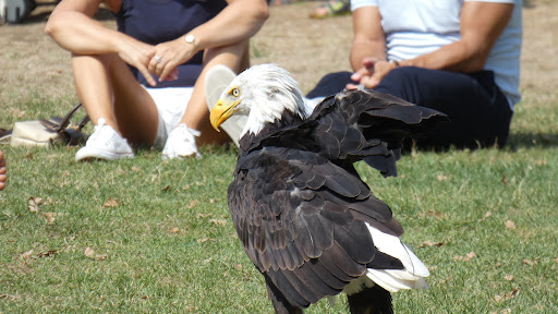 Participation du public, petite cerise sur le gateau d'avoir la chance qu'un perroquet/perruche se pose sur nous. Les fauconniers/dresseurs sont interessants et dynamiques.