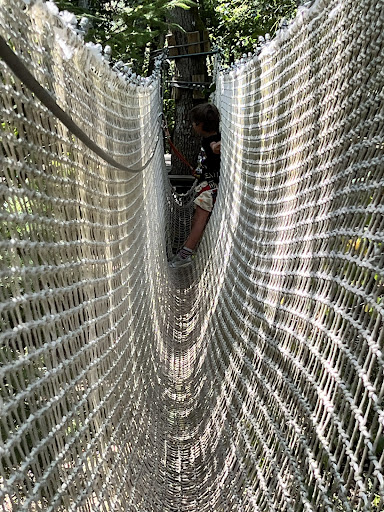 A good sized site, with a big range of rope courses catering for different levels of confidence. The site felt professionally run, with a good safety talk (in English) delivered at the beginning - after that you are left to your own devices. The courses themselves are divided into three groups - easy, medium and hard, with each group comprising three courses.