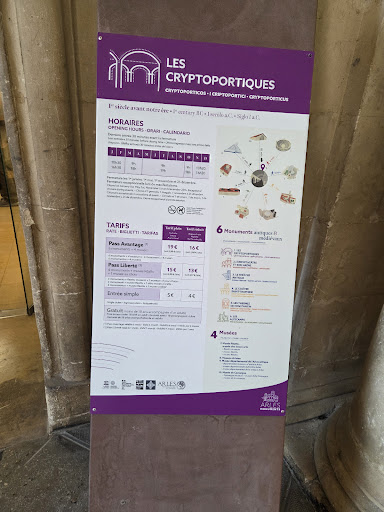 If roman architecture is your thing don't miss it. A little note, there are only three descriptions panels on site, mostly in French, so an advise could be to read on the subject before going down to enjoy the herculean works. The visit consist of ambling in a massive underground structure, (in terms of volume of stones moved and carved with precision), to level the slope of the hill, so it could hold the constructions that came above, i.e the forum, the government official buildings and temples (all of which have disappeared, (except for 2 columns left in an adjacent building). A good place to ponder and reflect on the Roman power and architectural mastery. They made things to last for centuries, as if they were building eternity 😅. You can visit the place in a few minutes or take your time to enjoy their ingenuity...