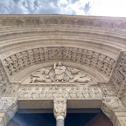 Read moreLa catedral de Trófimo es un edificio románico de la época carolingia de medianas proporciones, que fue construido entre los siglos XI y XII sobre el emplazamiento de una basílica del siglo V dedicada a san Esteban. Posteriormente se le añadieron entre los siglos XIV y XV las capillas laterales y un ábside. El campanario, en estilo lombardo y formado por tres secciones, fue añadido en el XII, mientras que el crucero fue modificado durante el siglo XVII. En este templo tenía lugar en la Alta Edad Media, las coronaciones de los soberanos de Arlés, como la que tuvo lugar en el año 1178 con el emperador del Sacro Imperio Romano Germánico, Federico I Barbarroja. Posteriormente la catedral se convirtió en iglesia parroquial en el 1801 tras trasladarse el obispado a Aix-en-Provence; después será transformada en basílica menor en el año 1882 por el papa León XIII. Destaca su extraordinaria portada románica, que nos describe escenas del Juicio Final, en la mitad superior de la portada aludiendo a la Parusía o segunda venida de Cristo para juzgar a vivos y muertos. En el tímpano aparece un Pantocrátor con la figura monumental de Cristo, rodeado de los símbolos de los cuatro evangelistas. Bajo él y sobre la puerta, se encuentra los 12 apóstoles como jueces. A grandes rasgos, a los lados, entre columnillas y pilares apoyados en leones estilóforos, se alinean las representaciones escultóricas de varios santos. Por un lateral desde la plaza se puede acceder a través de un pórtico al lado del Palacio Arzobispal, al magnífico claustro.