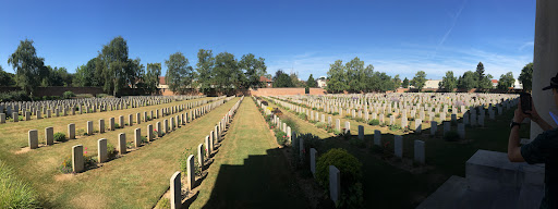 Read moreWe went as a group with the Somme Society ,A beutifull cemitary with one of our members family recorded on a panal. The site is being used for Wedding photos on the inside on the blank sandstone walls . A Muslim wedding was using the Cemetary ,with piles of Pizza Boxes on the benches and a Total lack of respect to the Fallen . Neadless to say they were evicted with no doubt as to our feelings towards them . This is not...
