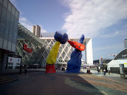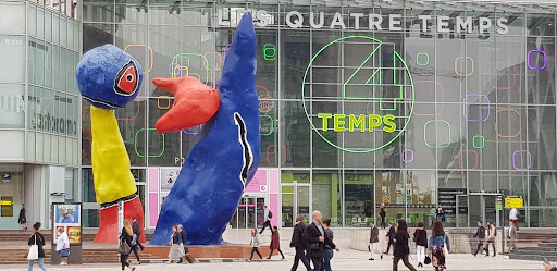 FR: Une statue intéressante est une sculpture monumentale de Joan Miró. C'est l'une des œuvres d'art de la Défense, en France, se dresse à l'une des entrées de Westfield Les 4 Temps.
