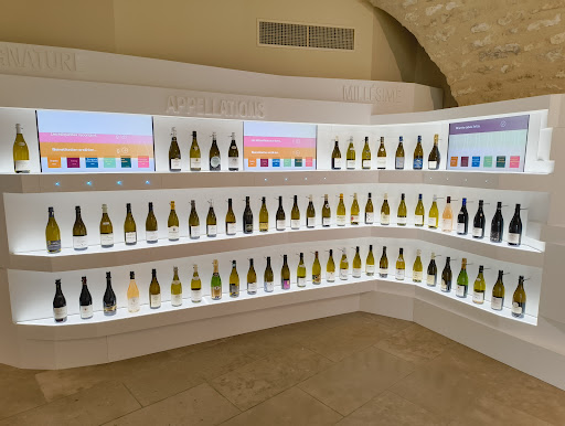 La Cité des Climats et du Vin de Bourgogne à Chablis a ouvert ses portes en mai 2023. Elle a élu domicile dans l'ancien Cellier du Petit Pontigny, jadis utilisé par les moines cisterciens de l'Abbaye de Pontigny voisine pour stocker et élaborer le vin issu des vignobles environnants. Le résultat de la restauration et du réaménagement est superbe ! On est immédiatement frappé par l'intégration harmonieuse de la nouvelle structure contemporaine aux anciens bâtiments rénovés. Les matériaux employés — bois et surfaces vitrées — conjugués à la pierre, dégagent une impression de modernité et d'authenticité. Nous avons beaucoup aimé l'approche interactive de la visite. À notre arrivée, un bracelet nous a été remis, véritable sésame permettant d'interagir avec les différentes installations de la cité. Il suffit d'approcher le bracelet des bornes interactives facilement identifiables pour déclencher des vidéos, des animations ou commentaires audio. Nous avons ainsi pu découvrir l'histoire du vignoble, les techniques de vinification et les spécificités des vins du Nord de la Bourgogne. L'accent mis sur le terroir est particulièrement intéressant. On y découvre l'importance des caractéristiques du sol et l'influence du climat sur les vins de Chablis et du Grand Auxerrois. C'est une véritable leçon de géologie et de climatologie appliquée à la viticulture. Une partie de la Cité des Vins de Chablis est dédiée aux étiquettes collées sur les bouteilles : souvent négligées mais importantes, les étiquettes sont de véritables ambassadrices visuelles du vin. La Cave aux Senteurs, quant à elle, propose une découverte interactive et ludique des arômes des vins, tels que les fruits et les minéraux. Elle permet de mieux comprendre leur importance dans la qualité des vins. Avant de remonter pour la dégustation d'un verre de Bourgogne, vous êtes invités à laisser une trace de votre passage, sous la forme d'un bouchon sur lequel vous aurez écrit votre nom, avant de le glisser dans un tonneau. Nous avons été ravis par cette visite ludique, interactive et intéressante, qui, de plus, se déroule dans des locaux...