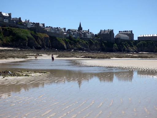 Le seul bémol est que la plage disparaît à marée haute; l'esplanade et la promenade du Plat Gousset sont le seul endroit où étendre sa serviette. A marée basse la plage se découvre et peut accueillir beaucoup de monde sans jamais sentir la surfréquentation. La plage offre la possibilité de très nombreuses activités en plus des distractions balnéaire traditionnelles: _ Pêche à pied _ Skimboard: le site très favorable _ Longe Côte : le site très favorable _ Equitation _ Les promenades à marée basse sont très agréables et souvent grandioses; vous pouvez aller vers la pointe de la haute ville ou vers Donville et Saint Martin ou même vers le large.... Marcher sur la grève, le sable ou dans les flaques est un vrai plaisir; les promenades sont beaucoup plus agréables que dans certains sites de la baie du Mont Saint Michel où la progression est souvent rendue difficile à cause des zones de vase collante. Attention aux horaires de marées pour votre sécurité.