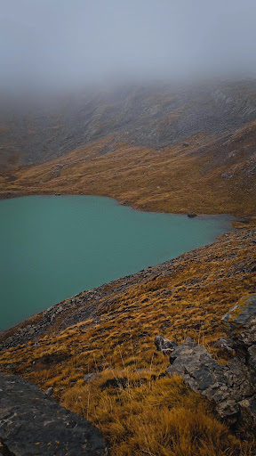 Davvero bello, di un colore intenso che faceva un contrasto pazzesco con l'erba dorata, nonostante ci fosse molta nebbia. Non oso immaginare come sia col sole. Quest'anno poi (2024) è al massimo della portata, anzi era talmente pieno da diventare un lago unico con il laghetto accanto. È solo un pó lungo l'avvicinamento. Il dislivello è poco, circa 520 mt, ma c'è un lunghissimo pianoro da attraversare quindi contate un pó di km: 13.5/15 km andata e ritorno. Non sono tanti per quel dislivello ma se non si è allenati potrebbero pesare. In autunno marmotte non ce ne sono ma ero già andata a fine luglio e ce n'erano molte e molto confidenti.