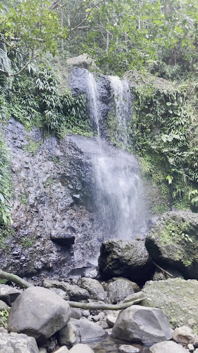 Great hike. The left trail says shorter but way more difficult, slippery with lots of steep declines and inclines but there is a rope. The one on right is more manageable when wet, we ended up doing the whole loop. Not good for young kids. You can get quite close to the waterfall for a cool mist. Not the best on the island but nice nonetheless. You do need to be agile with good balance over roots and crossing the river. Bring shoes for muck and river crossing and a bag to put them in after. Can be...