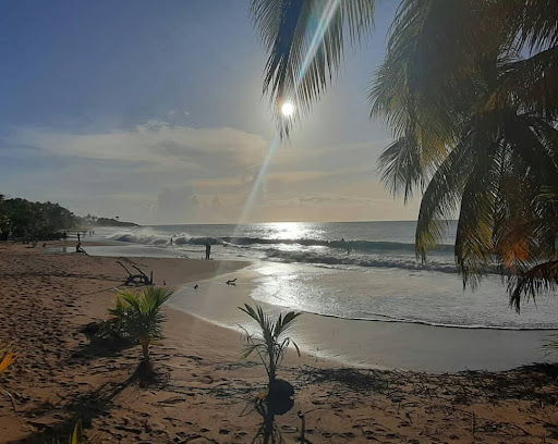 One of our favs on the whole island!! Amazing soft golden sand, picturesque palms, and a lot of room to spread out. Parking is crowded (as most beaches in Guadeloupe). The waves can be VERY large which my kids loved. If you go right past the waves (not far from the shore at all), you can have a peaceful swim. My kids loved doing the boogie boards and there were other kids there wave skimming. There are bathrooms and water to rinse off. We saw the house from the show Death in Paradise. Had drinks at the restaurant (very good drinks). Such a good day! The restaurant does blare loud music on the beach which we did not mind. If you prefer more quite, there is plenty of space to get away on this beach for a more...