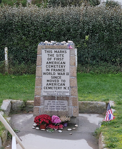 Dès le 6 Juin 1944, la réalisation d'un premier cimetière se révèle impossible car les pertes importantes en effectifs et il devient vital de trouver un lieu pour concevoir un premier cimetière provisoire. Pour parer à l'urgence, une fosse commune est creusée en attendant le 7 juin, une brigade spéciale du génie qui parvient à établir un premier cimetière à cet emplacement, directement sur la plage, au pied de la falaise. C'est le premier cimetière américain provisoire organisé par une compagnie du service de l'enregistrement des sépultures en France. Au moment de sa fermeture, le 10 juin, il renferme les corps de 457 soldats américains, quelques Allemands, des marins anglais et des...
