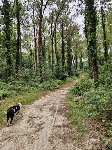 Read moreUne forêt sauvage et agréable, proche de la mer. Par contre, c'est franchement pénible tous ces propriétaires de chiens qui ne les tiennent jamais en laisse!!!! Les chiens courent dans tous les sens, frôlent les promeneurs et sans compter toutes les déjections non ramassées.....ils aiment tous leurs chiens....mais pas les 💩 qui vont avec!!! D'y coup, ne vous attendez pas à sentir l'odeur des pins et de la végétation....ça pue la 💩 tout le long des sentiers....Aucun...