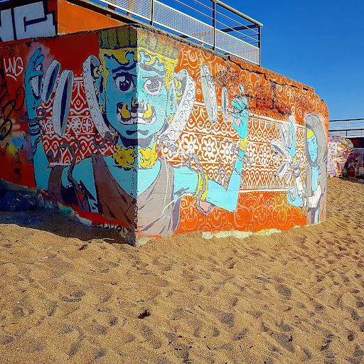 Points positifs : les poubelles sur la plage, les décorations des avancées en pierre taguées de manière colorée, les douches et les toilettes (modernes et propres), l'eau de mer propre, la plage protégée et le poste de secours attenant.