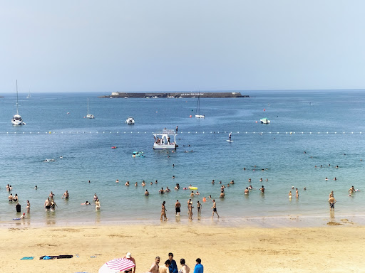 Read moreBelle plage avec pas beaucoup de place près de la douche à marée haute bar restaurant et petit camion snack. Plage surveillée pas de grosses vagues idéale pour les petits et pour les plus grands avec un masque et un tuba on peut observer les poissons près des rochers. Il y a aussi un filet pour faire un...