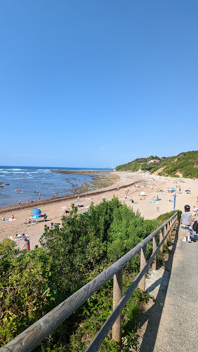 Read moreUne plage de sable assez grande pour la côte Basque. Deux accès possibles (Nord ou Sud) mais attention le parking est très limité des deux côtés. Vue agréable, petits restos à proximité immédiate. La baignade est surveillée en période estivale. Les points négatifs : la baignade n'est pas forcément agréable en dehors de la marée haute, du fait des rochers présents dans l'eau ; a contrario c'est une aubaine à marée basse pour les pêcheurs de crabes en culottes courtes ! ATTENTION : pêche à la ligne autorisée seulement depuis la grève, interdite depuis les rochers (on est dans un pays qui aime bien interdire...) Un petit ruisseau débouche sur la plage, et son aspect n'est pas des plus engageants. Par ailleurs une station d'épuration se trouve immédiatement au dessus de la plage ; en cas de fortes pluies, un by-pass déverse le trop plein des égouts directement à cet endroit, par conséquent il vaut mieux éviter d'aller s'y baigner après une nuit orageuse, par exemple... Bref, une plage basque, avec son charme et les problèmes inhérents à la surpopulation et à l'urbanisation...