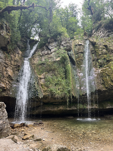 Read moreTrès franchement, on ne s'attendait pas à ça. On était dans le coin pour le weekend et on avait 30 minutes à occuper dans notre agenda du jour férié avec pas grand chose d'ouvert et on s'est dirigé vers ce petit point sur Google Map. Pas de parking mais de quoi se garer le long de la petite rouge peu fréquentée. Un petit chemin avec un petit panneau indique qu'on est au bon endroit. On passe un petit ponton en bois qui craque (attention d'y passer doucement), on marche quelques minutes sur un chemin tout en profitant du beau paysage (encore meilleur avec le beau temps et les belles couleurs d'automne) et on arrive à la fameuse cascade. Elle existe, l'endroit est intime et magique. Ce beau coin de nature a fait sensation pour...