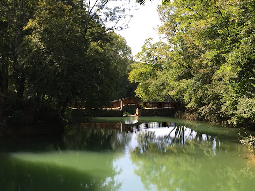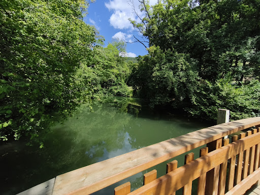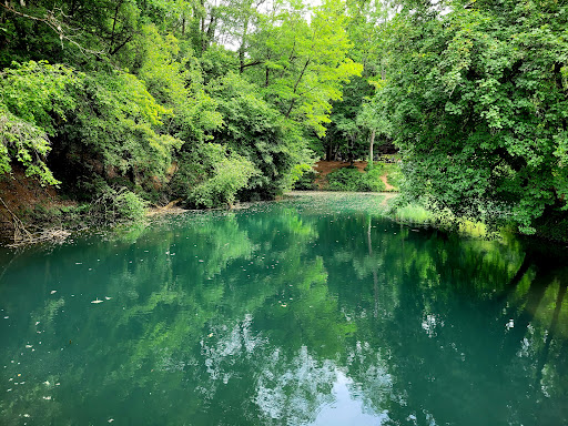 Plus vert que bleu (lié à la saison peut-être car visité après une canicule - très faible apport d'eau). Situé dans un vallon très encaissé et ombragé avec très peu d'endroits où il est possible d'avoir une vue d'ensemble. Quasiment aucun endroit où l'on peut se poser au bord de l'eau, mais seulement en retrait (zone pique-nique au bout). Facile d'accès (400 m à pied compatible poussettes), donc attractif pour beaucoup de monde pour un si petit endroit.