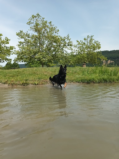 Cette "plage" est idéale pour une balade autour du plan d'eau au flanc des collines mais aucun moyen de se baigner à cause des rochers et de la...
