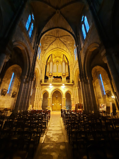 Read moreLa voilà , elle est là , devant moi sous un magnifique soleil d'automne mettant son architecture en valeur. Sa haute flèche nous invite à regarder vers le ciel qu'elle semble presque toucher C est jour de marché ce matin donc je reviendrais ce tantot Pour la visite. 14h30 , je passe le porche et reste subjugué par cette longue et haute nef : j avance doucement le regard attiré de tous côtés par la superbe des statues qui ornent cet édifice :l"orgue nous domine la haut au-dessus de l entrée La lumière jaillit de partout De par ses sublissimes vitraux ...Que de beauté en ce lieu qui inspire la méditation Je m assied sur une chaise la tête dans des étoiles Bon , ce n est pas tout : il me faut maintenant faire des photos dans le plus grand respect des lieux Voila c est fait .Je ressort sans oublier de me retourner encore une fois sur l une des merveilles de ce Périgord que j...