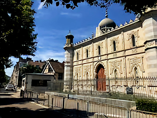 Read moreLa synagogue de Besançon est un bel édifice d'un genre inhabituel pour la ville mais très bien intégré. Dans le quartier Battant elle a trouvé sa place et fait partie du paysage sur le quai de Strasbourg (initialement quai Napoléon). Édifiée entre 1867 et 1870 suivant les plans de l'architecte Pierre Marnotte elle est de style Hispano-Mauresque (peut être influencé par un vers de Victor Hugo :" ... alors dans Besançon, Vieille ville espagnole, ...". C'est le Temple Israélite de Besançon. Je le trouve...