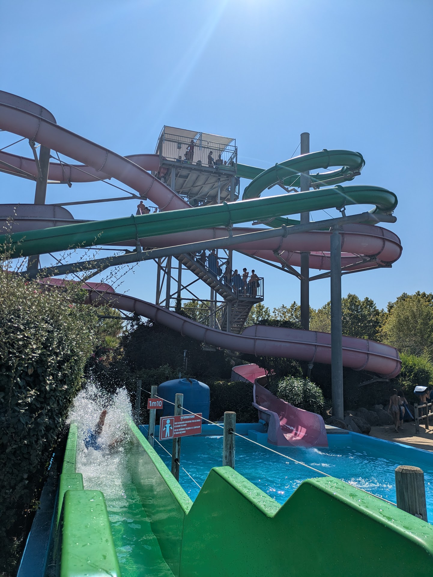 First, The rules are not enforced at all you can't bring food in, yet everyone has food and mini fridges, you can't wear normal swimming shorts, swimming trunks are mandatory yet nobody follows this rule (Good, I went to buy swimming trunks just for this, thanks for the waste of money), oh and do not worry about the height limits, they are barely even enforced. I had a 5 year old child do a ride that required to be 120cm, he clearly didn't pass the heigh requirement at the entrance but hey they let him through. The staff are just rude towards english speakers and do not speak english at all (what a surprise in France). I speak french so it was kind of okay to them. The translations are awful by the way. Good luck understanding. They're so bad they even invented words to put on there.