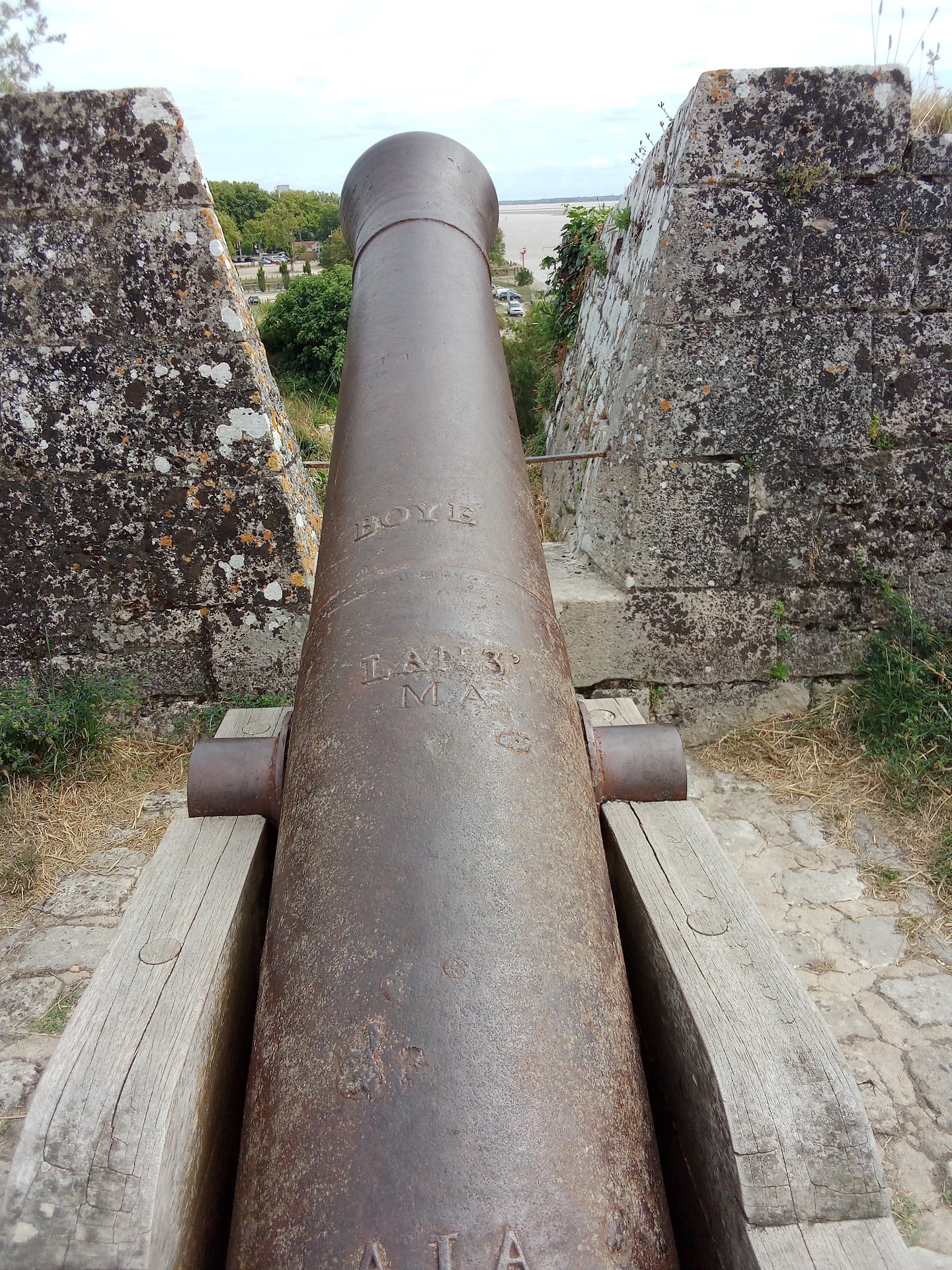 The construction of the Citadelle de Blaye was begun in 1652 by an architect named Pagan, then reinforced, enlarged, and finished by France's most famous military architect, Vauban. An amazing amount of history remains intact here, giving us clues to the daily life of soldiers in the 17th century under Louis XIV. Entrance is free, and you can walk around the 1.5 km of ramparts overlooking the Gironde estuary. More walks take you to the side of the Fort that overlooks the town of Blaye. Very solid benches (recently made from huge square oak beams) and picnic tables offer respite and a place to eat. Several restaurants are located within the walls of the citadel, as well as a hotel and a campsite. While the campsite is only open during the spring and summer, the hotel, most of the restaurants and a good number of shops are open year round. This is an all-weather destination, as the numerous trees and benches in the central park area offer shade from the sun, while restaurants and bars offer shelter from the cold and rain - plus a good meal or a hot drink if you wish. Photo opportunities abound and change with the weather. Our most recent visit was in between rain showers, bringing out the contrast and unity of grey stone and grey sky. Pets are allowed on leash/lead, and there are wheelchair friendly parking and entrance ramps. The Tourist Information Centre offers tours in English, French and undoubtedly other languages, so don't miss this very interesting...