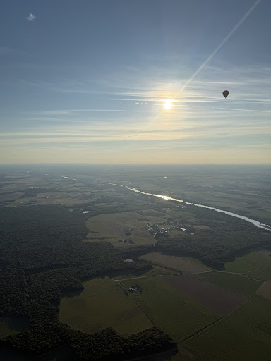 Read moreEin empfehlenswertes Erlebnis! Start war 5:10 Uhr an der Domaine des Pierettes. Im Dunkeln fuhr der Autokonvoi die Loire hinauf in Richtung Blois. Dort auf freiem Feld wurden zwei Ballons aufgeblasen. Ein kleinerer und ein großer Ballon mit etwa 20 Personen in kleinen, voneinander getrennten Boxen. 6:20 Uhr Aufstieg mit der Sonne ☀️ Ein unbeschreibliches Gefühl des Schwebens. Mein persönliches Highlight des Fluges war eine Loire Überquerung in maximal 5 Meter Höhe. Ein quasi Touchdown. Kein Brennergeräusch mehr. Nur Vogelgezwitscher. Das Wasser zum Greifen nahe. Am anderen Ufer dann der schnelle Aufstieg in eine große Höhe. Sensationell. Unser Ballonfahrt hatte alles im Griff und verströmte mit seiner Ruhe Sicherheit. Auch bei der Landung. Ein kleines Hoppeln und schon war alles vorbei. Schade, dass sich eine Teilnehmerin beim Ausstieg wohl den Fuß gebrochen hat und mit dem Krankenwagen abtransportiert werden musste. Wir, Paar 69 Jahre alt, hatten zu keinem Zeitpunkt Probleme...