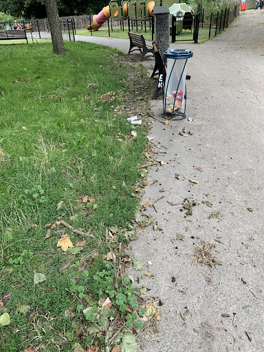 Lots of trees and a play area for children. My overall impression is that the park is neglected and the landscaping needs work. Also, the whole park area, here and across the street at the departmental park, is very confusing. There are no signs, many areas are fenced off, and some of the paths are overgrown...