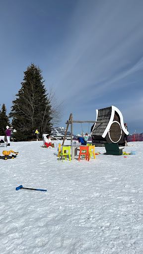 Read moreCe lieu fait le bonheur des petits sous la neige, avec de nombreuses activités possibles: des luges à disposition, des crayons/feuilles de dessins, des jeux et jouets, et de magnifiques petits cabanons avec cuisine en bois etc... Nous avons regretté que l’accès soit si difficile avec des tous-petits sous la neige pour les mamans qui les occupent pendant que skient les papas. Suggestion: un tapis tunnel pour...